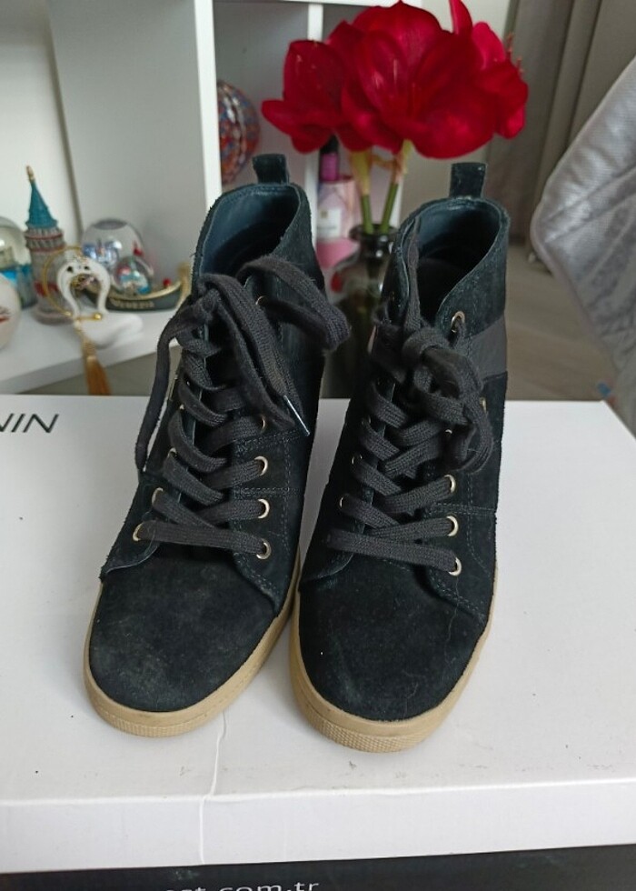 Süet gizli platform ayakkabı