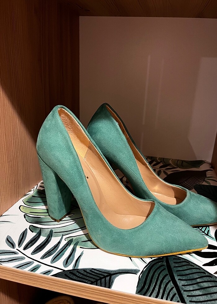 Süet kalın topuklu stiletto