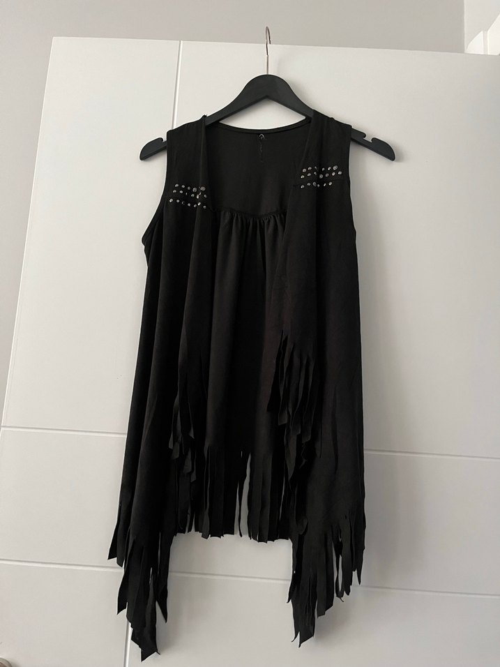 Koyu gri süet kumaştan, kayık yaka ve salaş kesime sahip yelek. Midi boyda, drapeli ve omuzlarda perçin detaylı, günlük kullanım için uygun.