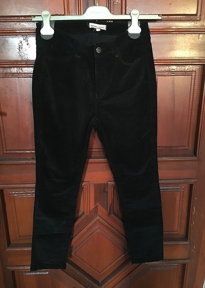 Süet görünümlü likralı dar kesim pantolon fermuarlı cepli.sol bel kısmıda küçük bir yırtılma var dikilebilir bir kusur sadece .pamuklu kumaş