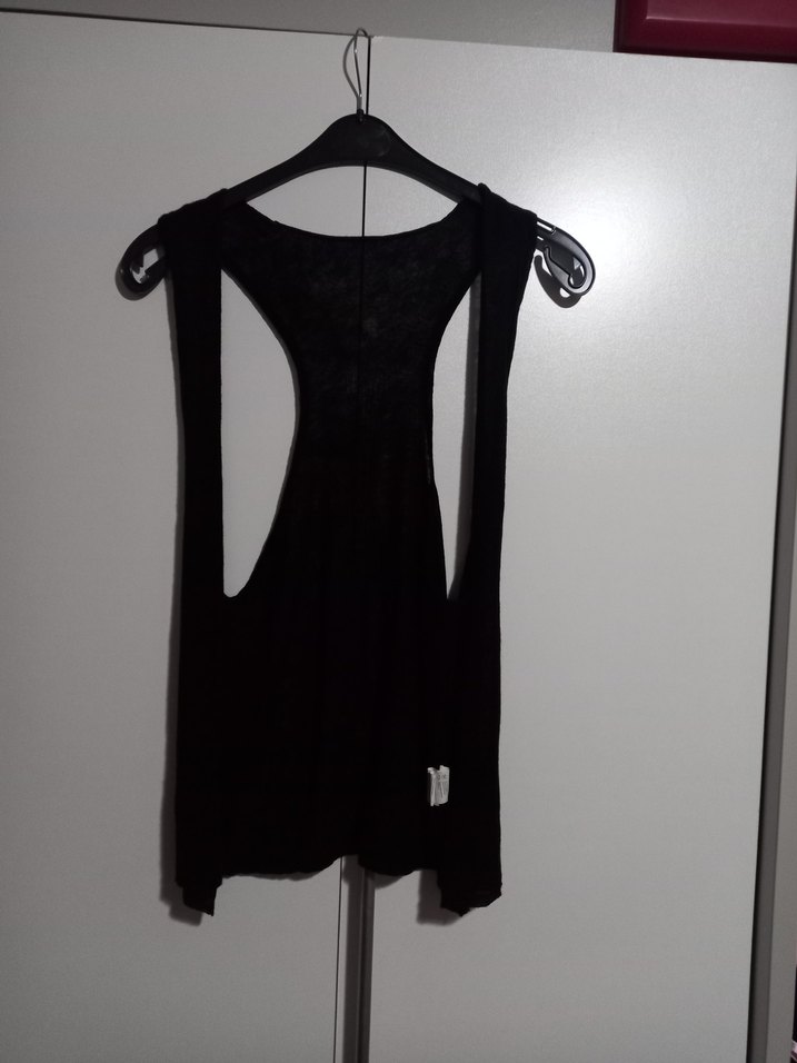 Siyah örme ince triko kolsuz üst derin dekolte yelek / bluz , salaş kesim midi boyuyla gotik tarzı yansıtıyor. ölçüleri görsellerde mevcuttur #zara #mango #koton #ipekyol #defacto #bershka marka temsilidir.