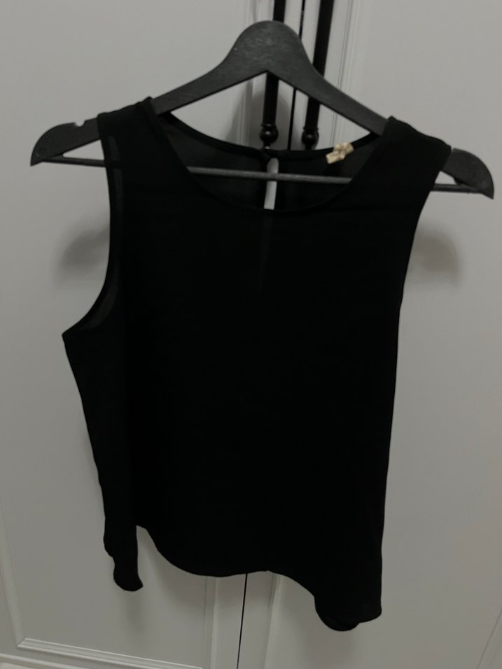 Siyah kolsuz bluz, V-yaka ve vücuda oturan kesime sahip, yumuşak süet kumaştan üretilmiştir. Minimalist gotik tarzda, açık hava kullanımı için uygundur.