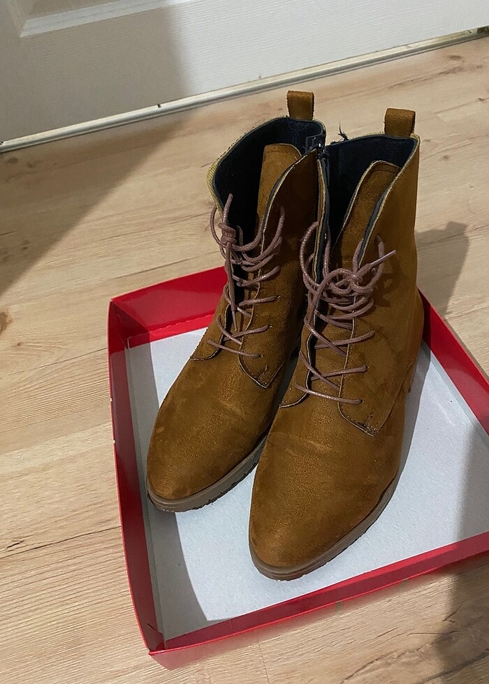 37 numara ama kalıbı büyük o sebeple 38 ile de uyumlu. Kenarları fermuarlı. Temizdir. Birkaç kere tek kullanıldı. Görseldeki gibidir. Fambella diye bir markadan alınmıştı.kullanımı rahat