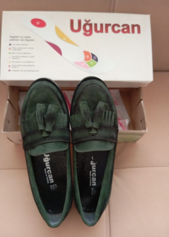 Koyu yeşil süet ortopedik tabanlı Loafer ayakkabı yeni hiç kullanılmadı
