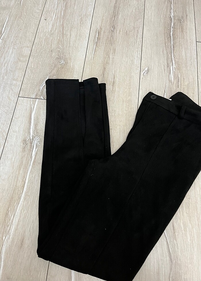 Ürün az kullanılmıştır, deformesi yoktur. Süet, önden yırtmaçlı düz paça yüksek bel pantolon