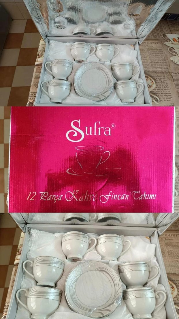 Sufra markasına ait 12 parça kahve fincan takımı, sade ve şık desenli fincan ve tabaklardan oluşur. ☕ sıfır ürün hiç kullanılmamıştır. bu ürün benim değil toplu alımda dikkate alarak almanızı tavsiye ederim çünkü sehirlerimiz farklı... marka temsilidir
