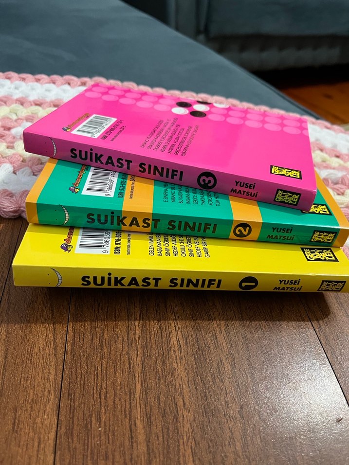 Yusei Matsui'nin Suikast Sınıfı serisi 1'den 3'e kadar renkli kapaklı ve ilgi çekici içerikli kitaplar.