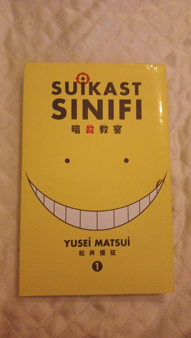 Yusei Matsui'nin Suikast Sınıfı serisinin 1. cildi, sarı kapak ve geniş bir gülümsemeyle dikkat çekiyor. Gerilim ve aksiyon içeriyor.