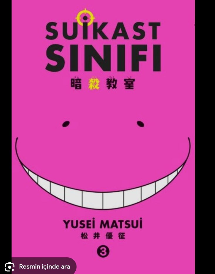 Yusei Matsui'nin Suikast Sınıfı serisinin 3. cildi, pembe kapakta geniş ve dişli bir gülümseme görseliyle sunuluyor. Bir çizgi roman kitabıdır.