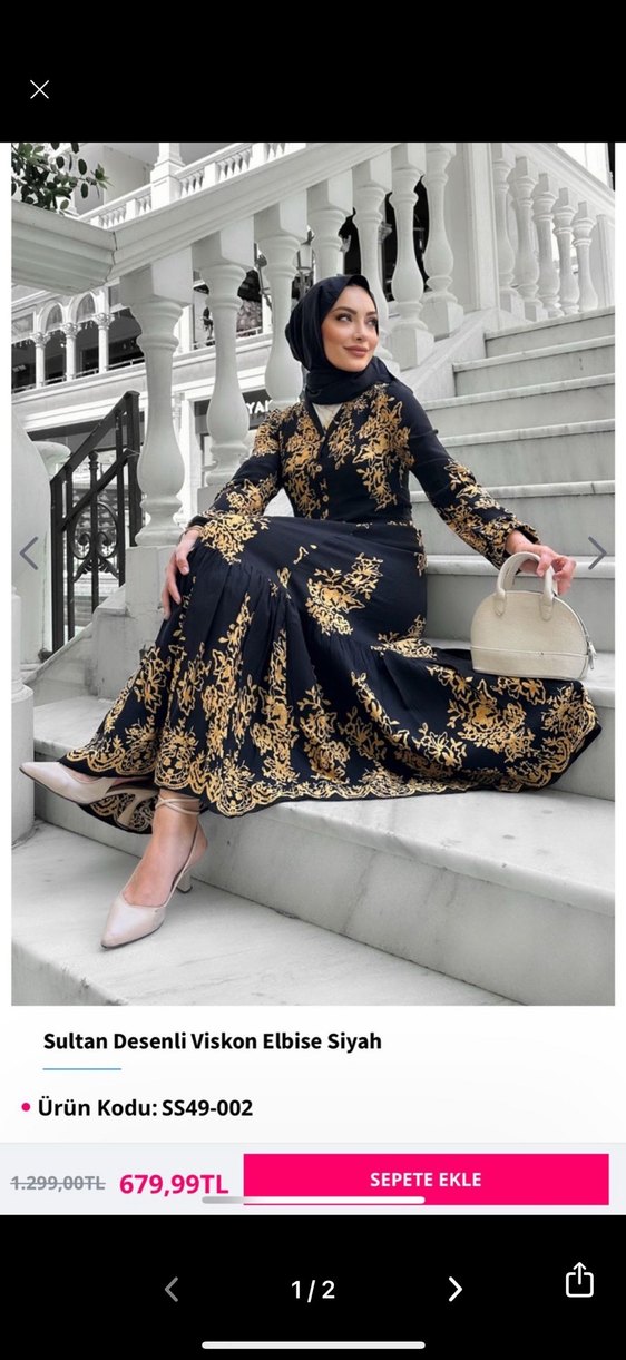 Siyah uzun elbise, sultan desenli yumuşak ve ipeksi viskon kumaştan. V yaka, drapeli ve askılı kol detaylı, ofis için uygun klasik şıklık sunar. 38 beden