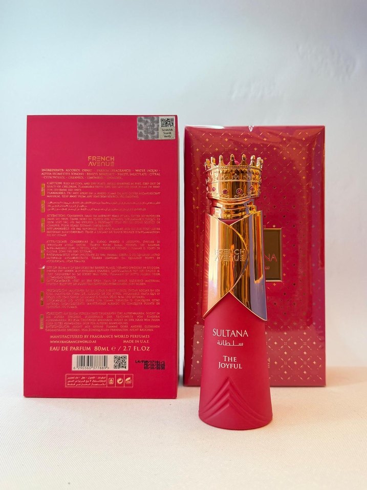 Sultana The Joyful, taç şeklinde kapaklı kırmızı ve altın renkli şişede, 80 ml kadın parfümüdür.