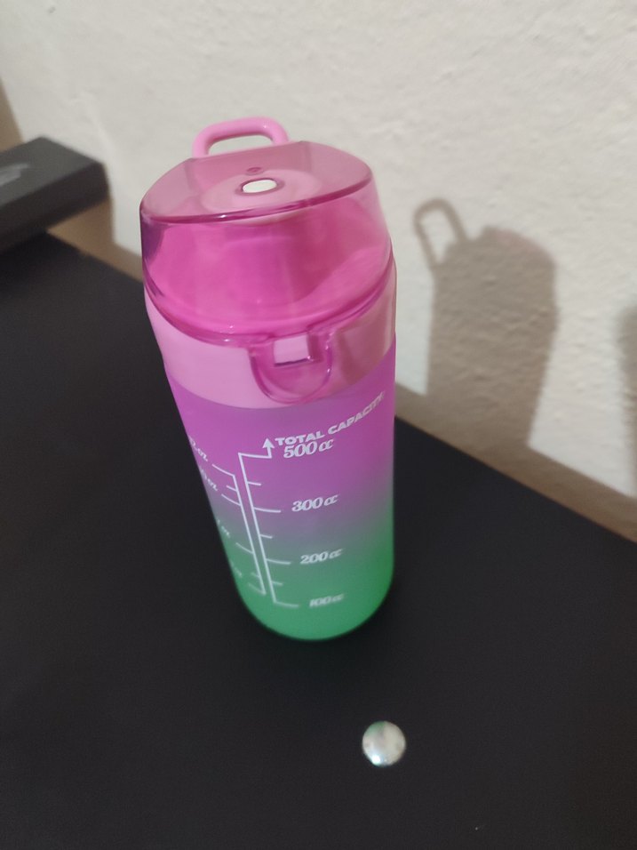 500 ml kapasiteli, pembe renkli güvenli kapaklı cam suluk