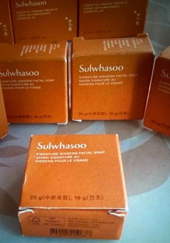 Sulwhasoo imzalı ginseng içerikli yüz sabunu, 25g ağırlığında, cildi temizleyip canlandırmak için tasarlanmıştır.