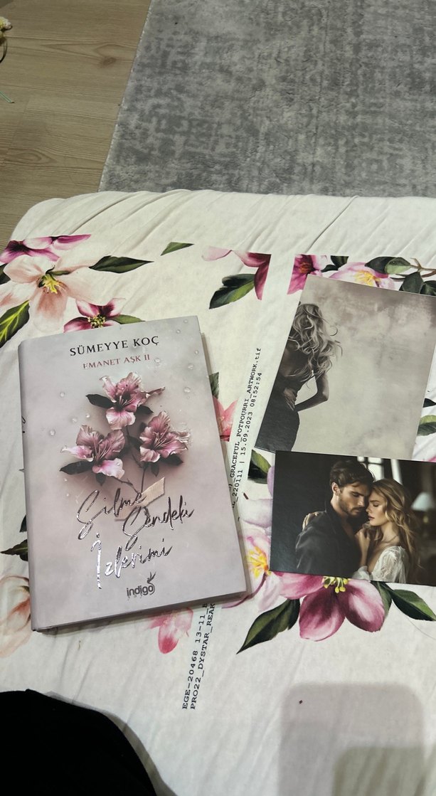 Sümeyye Koç'un "Emanet Aşk II" adlı romanı, çiçekli kapak tasarımı ve iki sanatsal fotoğraf kartı içerir. Sıfır