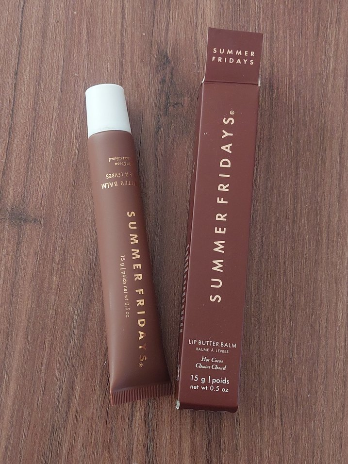 Summer Fridays Lip Butter Balm, koyu bej tonunda, dudakları nemlendirir ve yumuşak bir parlaklık verir. 15g ürün içerir. Hot cocoa rengi.