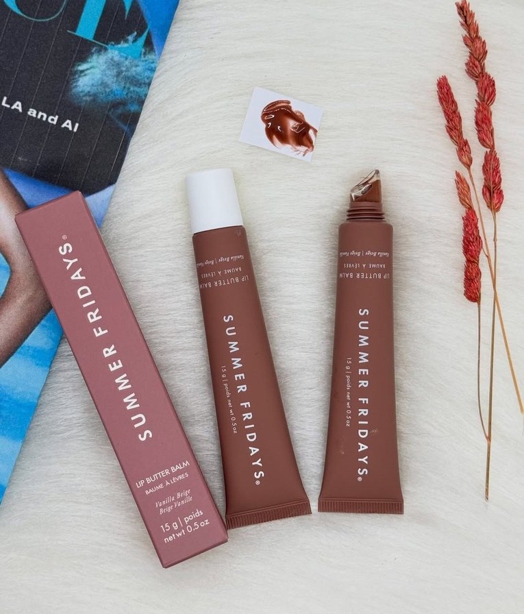 Summer Fridays'in pastel bej tonunda dudak parlatıcısı, pürüzsüz ve parlak bir görünüm sağlar. Yumuşak tüp ambalajda, kolay sürüm sunar.