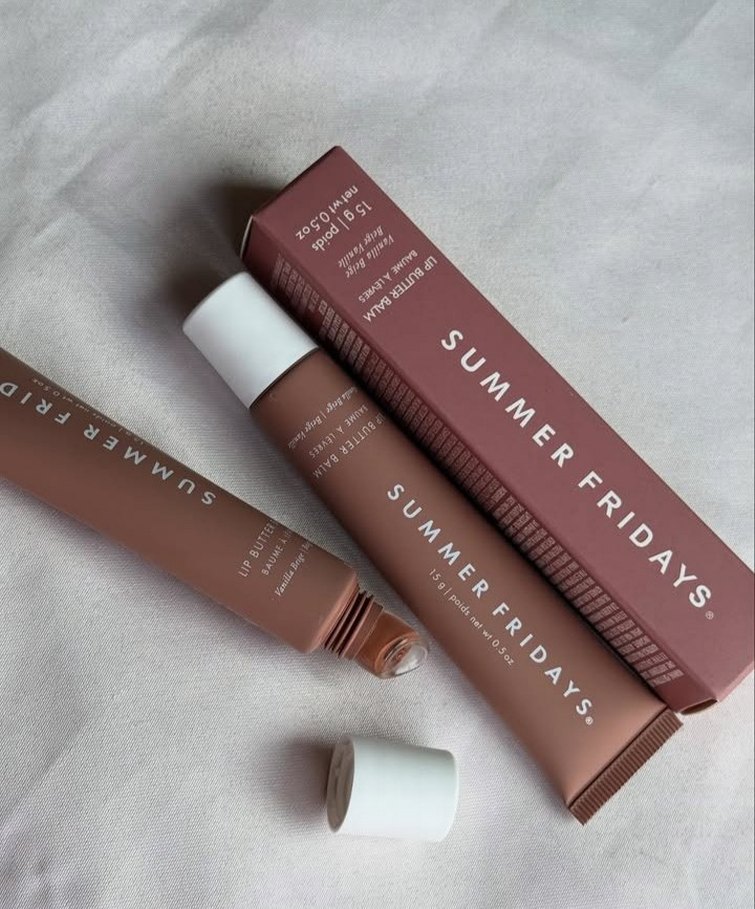 Summer Fridays dudak parlatıcısı, pastel bej tonunda, doğal görünümlü ve parlaklık sağlayan yumuşak dokulu bir üründür.