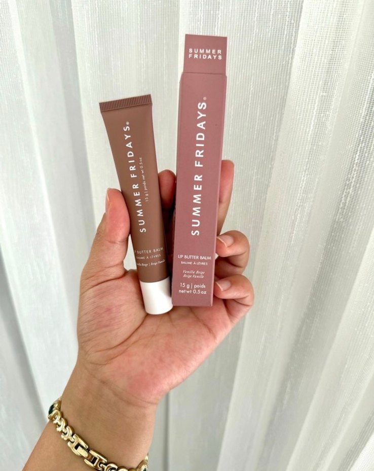 Summer Fridays markasına ait pastel bej renkte dudak parlatıcısı, dudakları nemlendiren ve pürüzsüz bir görünüm sağlayan üründür. Kullanışlı tüp ambalajda ve kutusunda sunulur.