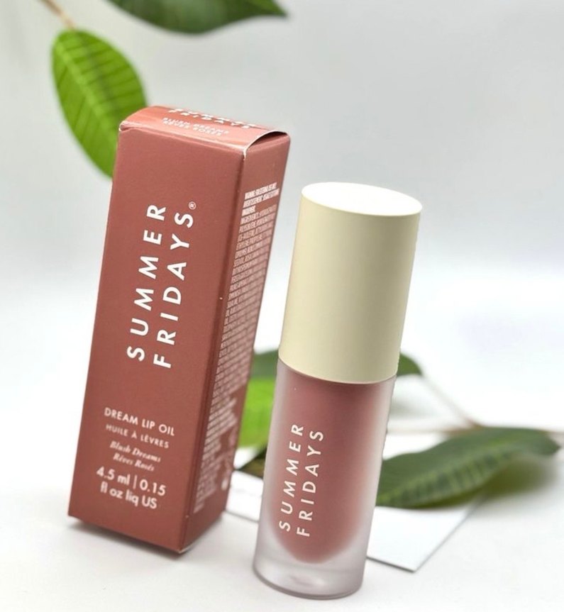 Summer Fridays Dream Lip Oil, yumuşak pastel pembe tonunda, 4.5ml nemlendirici dudak yağı sunar.