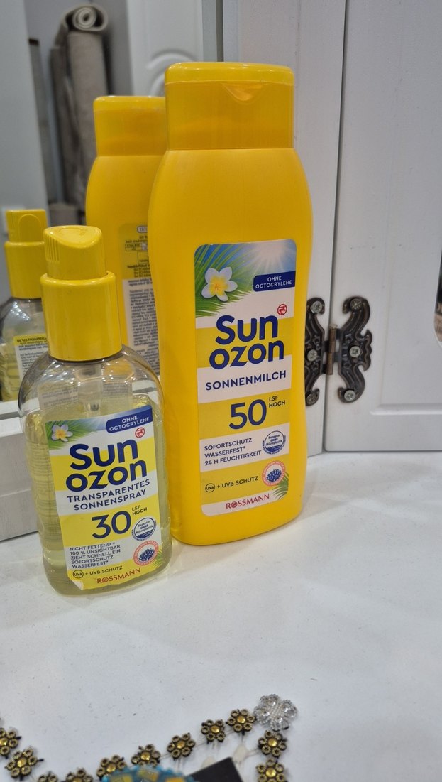 Sun Ozon güneş koruyucu süt SPF 50, uzun süreli nemlendirme ve koruma sağlar. Şeffaf sprey SPF 30 kolay uygulama sunar. Her ikisi UVA ve UVB koruması sağlar. ☀️