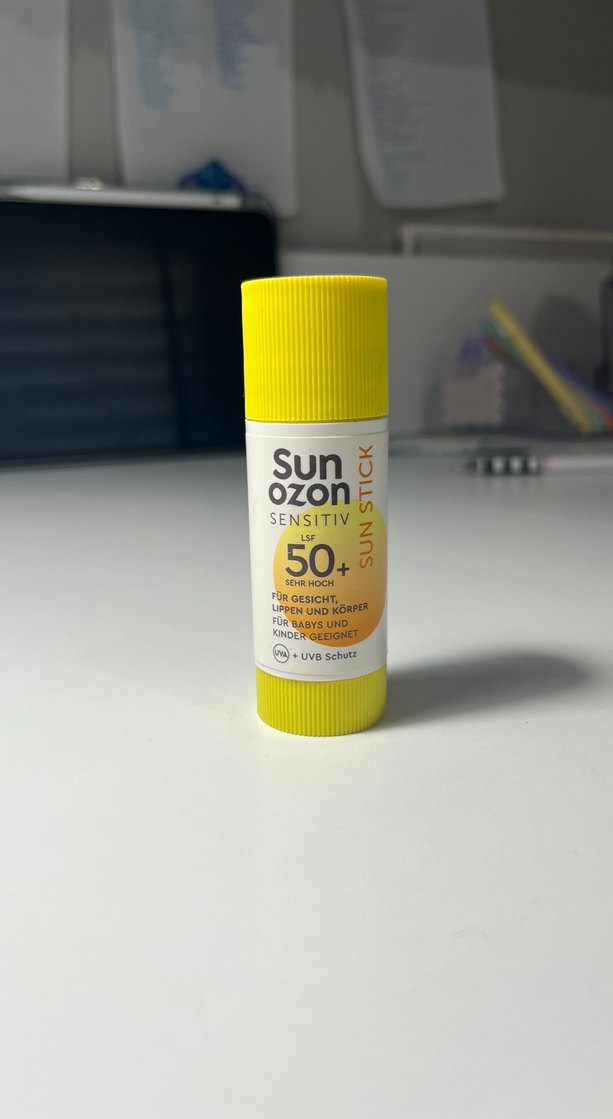 Sun Ozon SPF 50+ güneş stick, yüz ve vücut için çok yüksek koruma sağlar. Hassas ciltler ve bebekler için uygundur. UVB koruması içerir. Ürünü temizleyip göndereceğim.