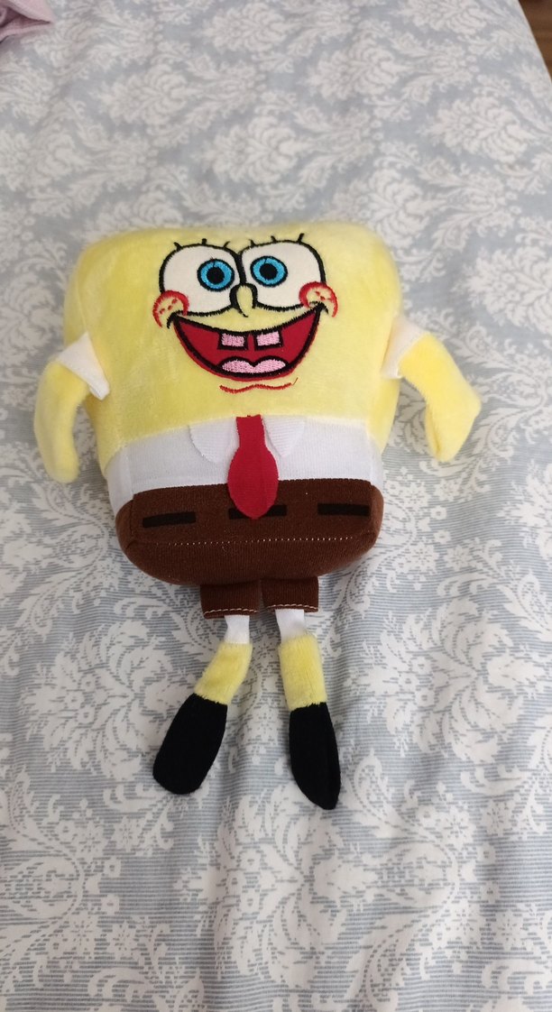 Canlı sarı renkli Sünger Bob peluş oyuncak, detaylı yüz nakışı ve yumuşak kumaş. Uzun kollu ve bacaklı, kahverengi pantolonlu ve kırmızı kravatlı. kullanılmamıştır ister süs olarak alın ister kızınıza alın ister kendinizi sevindirin ya da en sevdiğiniz kız arkadaşınıza hediye edin isterse de eşinize ya da sevgilinize alın çok amaçlı hediye bu hafta alımda 444