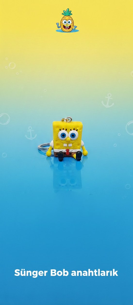 Detaylı yüz ifadeleri ve oturma pozisyonuyla renkli sarı Sünger Bob anahtarlık figürü. Canlı ve koleksiyonluk bir ürün.