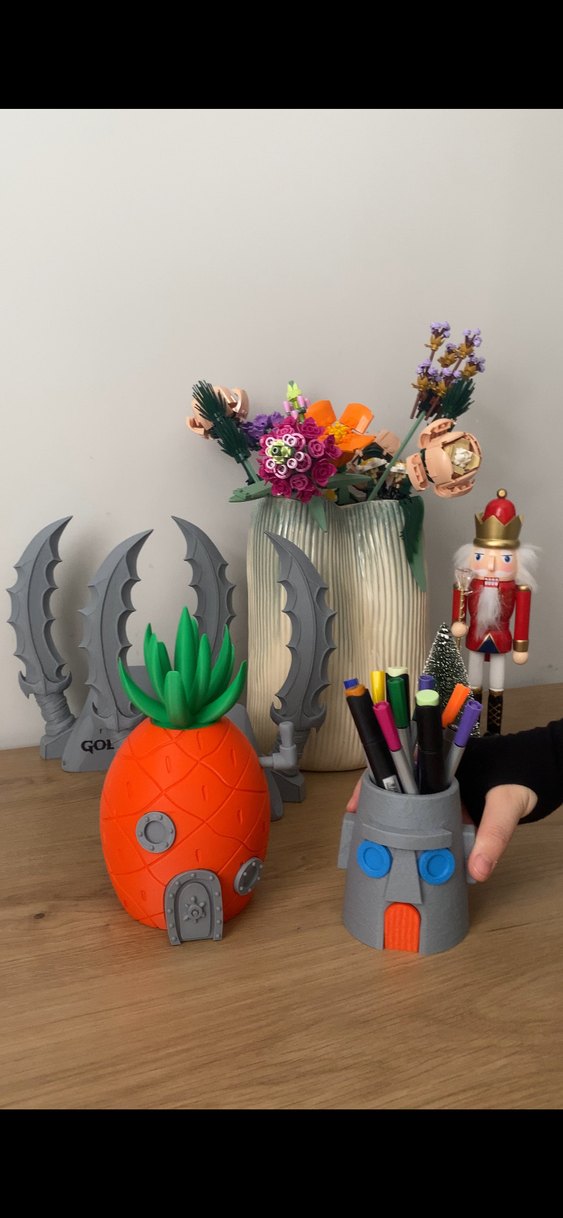 Gri renkte kalemlik ve deniz temalı dekoratif objelerden oluşan set, canlı renkler ve detaylı tasarıma sahip. ️