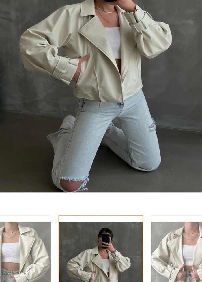 Suni Deri Ceket Bej rengi S beden