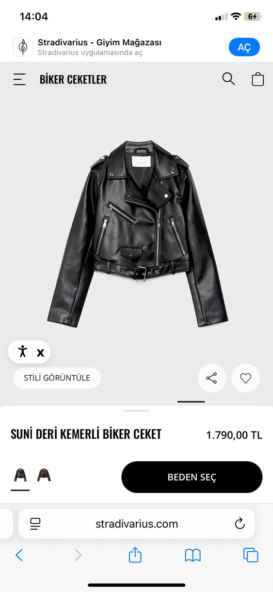 Kemerli bel ve kesik yakaya sahip siyah suni deri biker ceket. Kısa boylu ve askılı uzun kollu, minimalist ve şık tasarım. Günlük kullanım için uygundur.