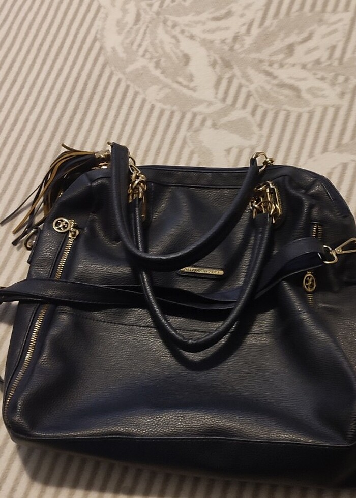 Yumuşak suni deriye sahip koyu lacivert çanta hiçbir çizik vs yoktur. Bir kere kullanıldı. askılı dır. Çok şık ve rahat Bir çantadır geniş ve derin çanta isteyenler ilgilenebilirler .yer Ankara