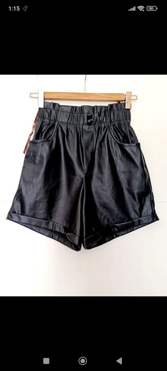 Yüksek bel boyu 38 cm bel kısmı lastikli Topshow suni deri şort