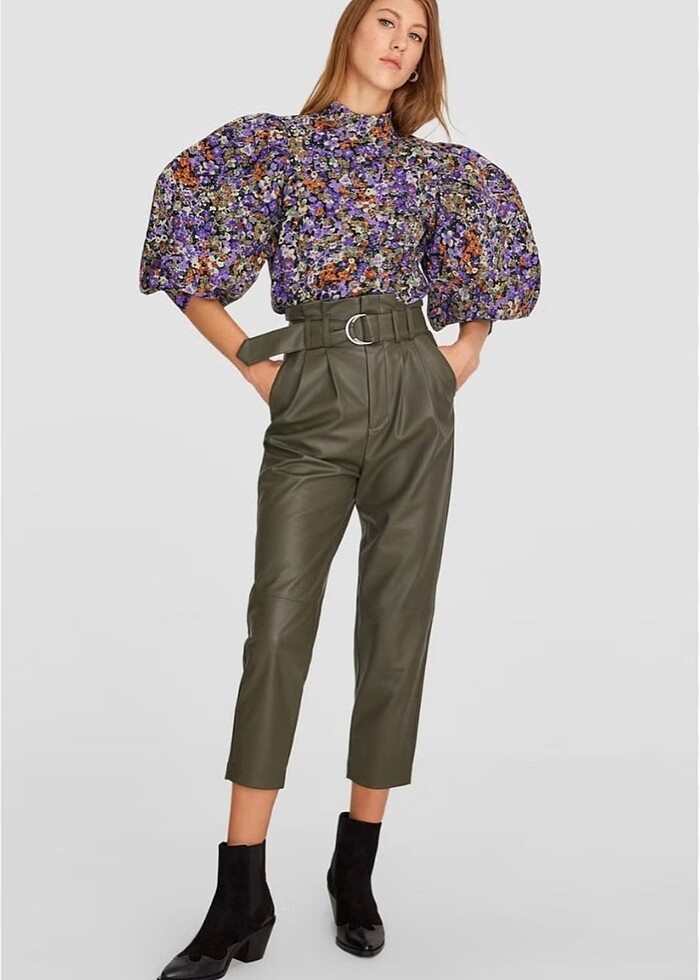 Suni deri yüksel bel pantolon