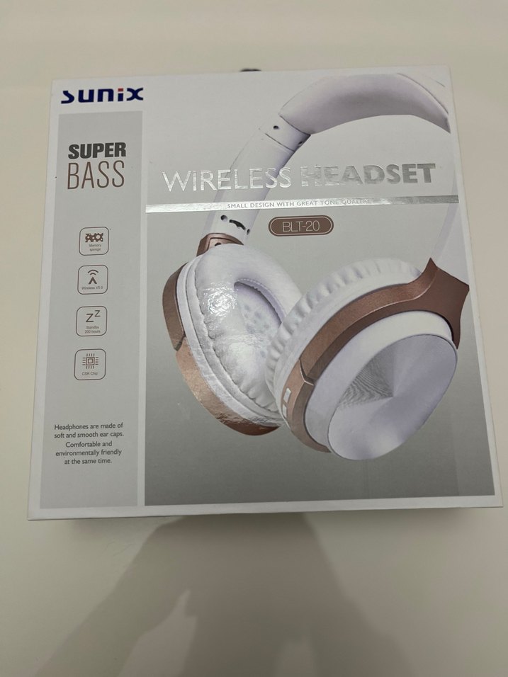 Sunix markasına ait beyaz kablosuz kulaklık, super bass özelliği ve yumuşak kulak pedleri ile rahat kullanım sağlar. Bluetooth bağlantılıdır. 3 aylık cihazdır hiçbir kusuru yoktur.