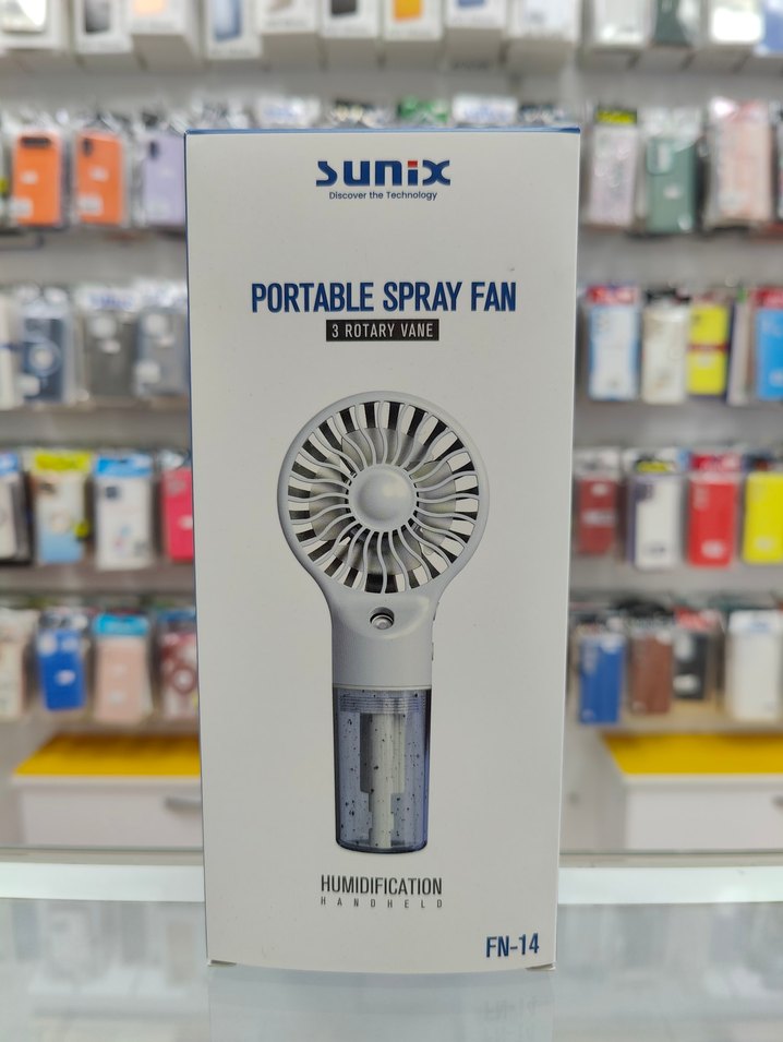 Sunix FN-14, 3 rotorlu beyaz tasarıma sahip taşınabilir sprey vantilatör ve nemlendirme özelliği sunar. Serinletici ve nemlendirici olarak kullanılır.️