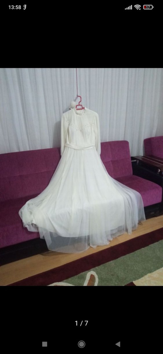 sünnet abiyesi Yüksek Yakalı Uzun krem abiye
