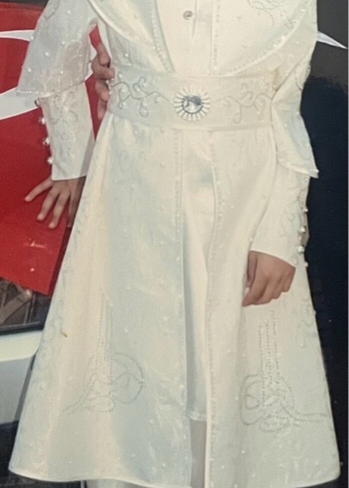 9 yaşa uygun . Şapkası dahil degil. Ayakkabıları içinde