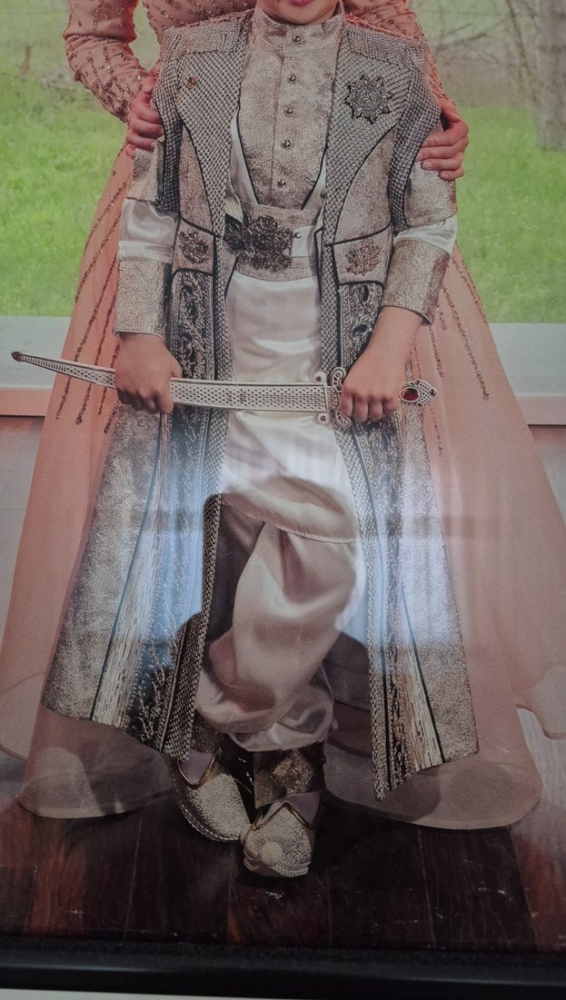 işlemeli gold renkte 8 yaş için sünnet kıyafeti cok iyi durumda herseyi ile vermek istiyorum fiyatı çok uygun tuttum geçen sene 2025 yaz ayında 4bindi bu takım