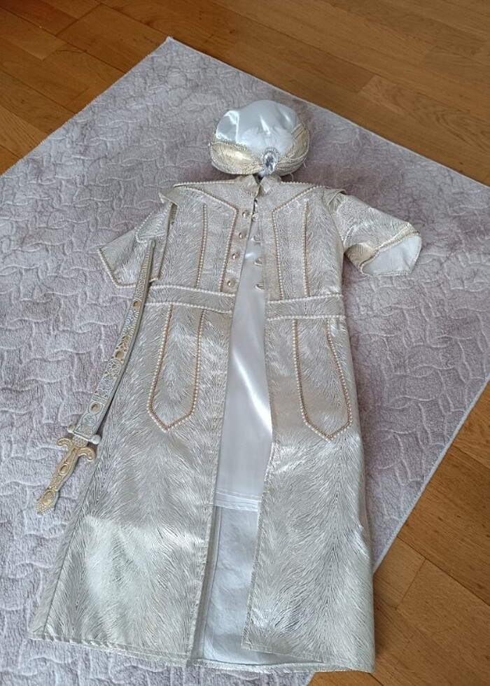 1 gün için kullanılmıştır temizdir 134 cm 28 kilo olan oğlum giymiştir biraz büyük oldu üstünde 3 beden yazıyor herşeyi içinde