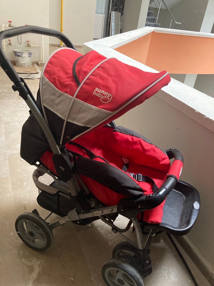 Sunny Baby bebek arabası kırmızı ve gri renkleriyle, koruyucu tente ve sağlam yapıya sahiptir. Bebeğiniz için konforlu oturma alanı sunar. kırık çıkık bozuk bi yeri yok. çok az kullanıldı.