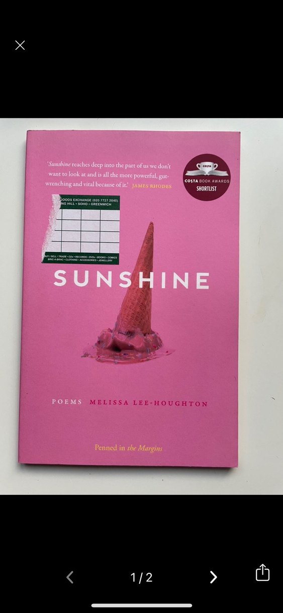Melissa Lee-Houghton'ın Sunshine adlı şiir kitabı, güçlü ve etkileyici dizelerle derin duyguları anlatıyor. Costa Kitap Ödülleri'nde kısa listeye girmiştir.ingilizce