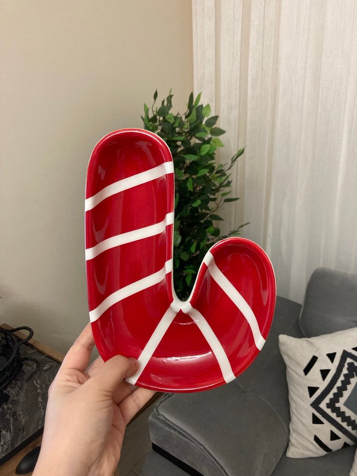 Beyaz çizgili kırmızı, şeker kamışı şeklinde tabak dekor olarak kullanıldı sadece