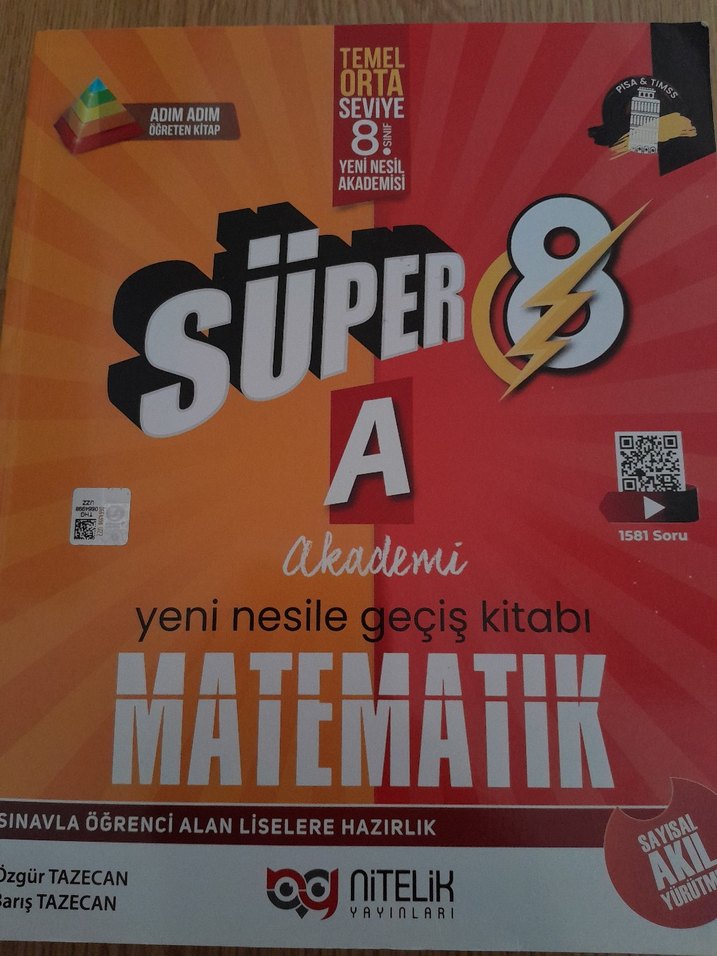 8. sınıf öğrencileri için lise geçiş sınavına hazırlık matematik kitabı. 1581 soru içerir ve yeni nesil akademi tarafından hazırlanmıştır.