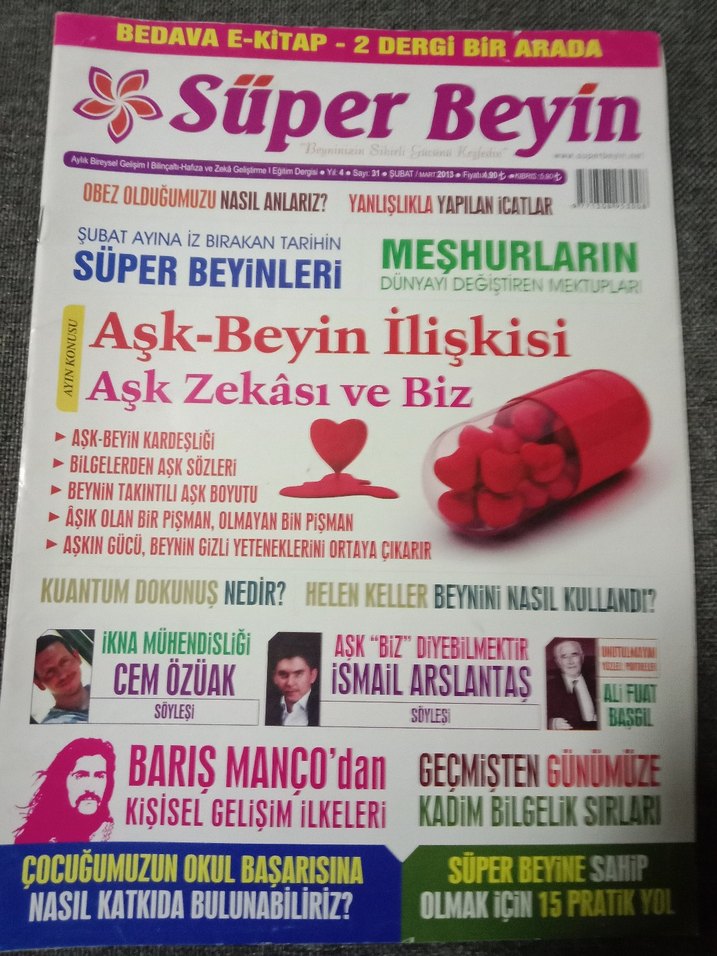 Süper Beyin dergisi, aşk ve beyin zekası ilişkisini inceliyor. Beyin gücü, kişisel gelişim ve çocukların okul başarısına katkı konuları yer alıyor.