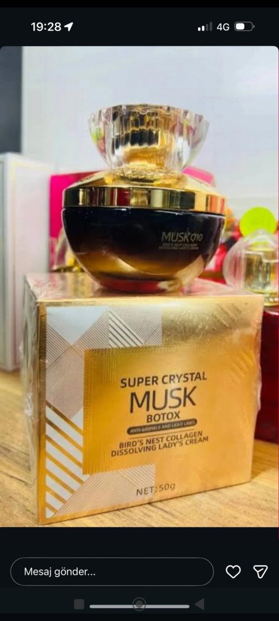 Super Crystal Musk Botox kadın pa, kırışıklık ve ince çizgilere karşı etkili. Kuş yuvası kollajeni ve çözücü krem içerir. Net: 500g.