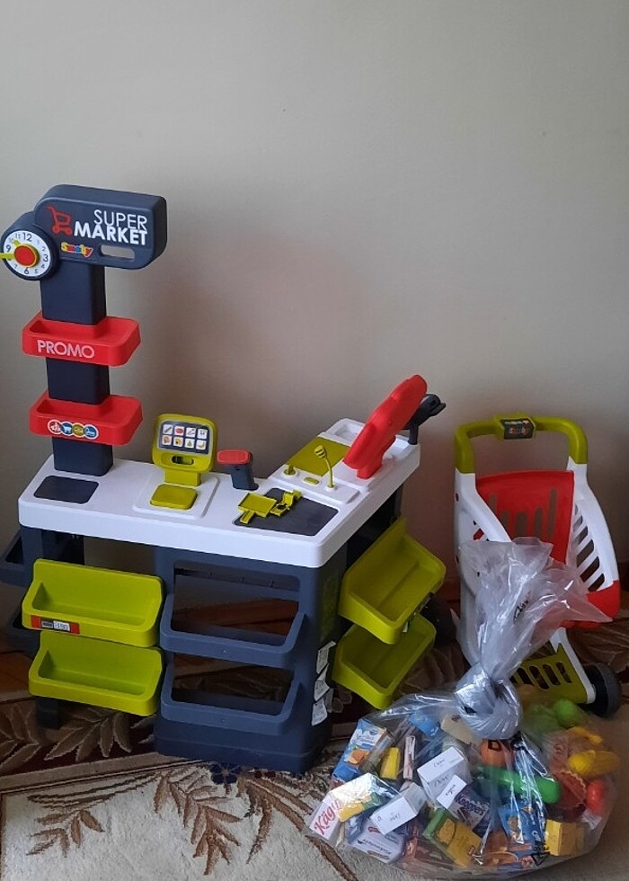 Eksik yok bir torba dolusu reyon ürünleri Resimlerde görüldüğü gibidir SMOBY MARKADIR İSTANBUL AVRUPA YAKASI İÇİN ELDEN TESLİM KONUSUNDA DESTEK OLABİLİRİM kasası dijital değildir fakat hesap makinesi vardır calisyor sorunu yok