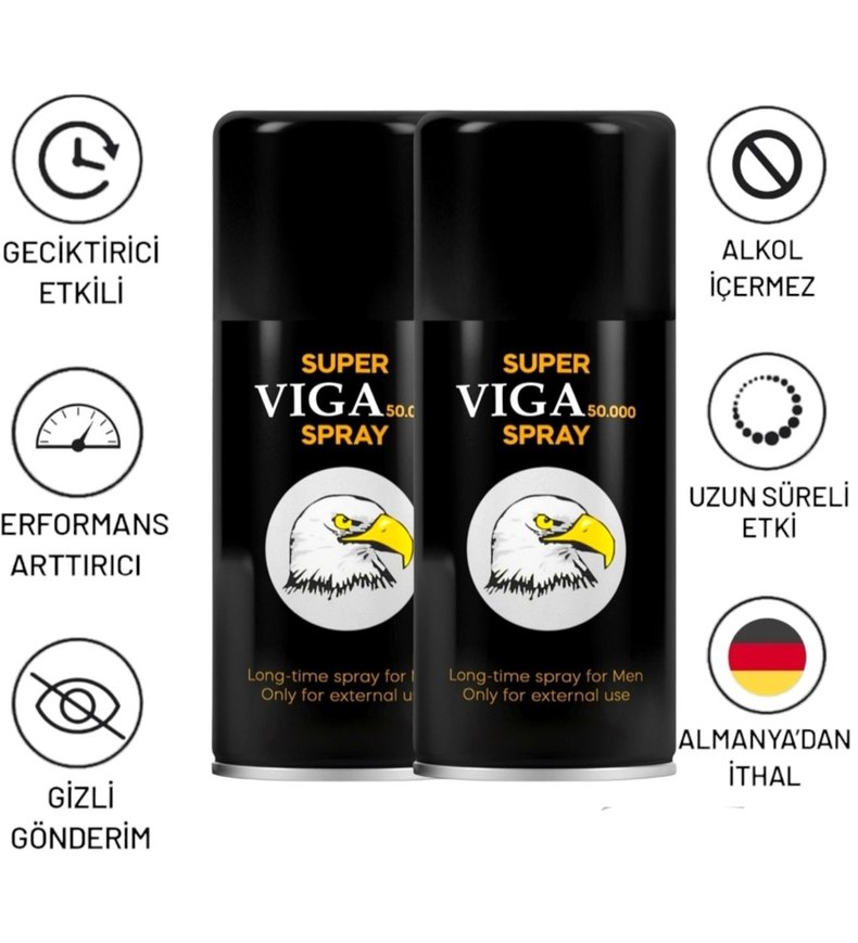 Super Viga erkek spreyi, sadece harici kullanım içindir. 50ml iki adet kutudan oluşan uzun süre etkili bir üründür. Almanya yapımıdır.