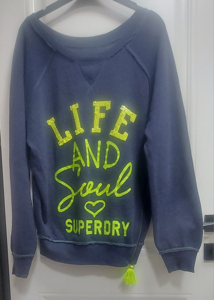 Boyu 74 cm,iki kol altı genişlik 57 cm.İçi miflonlu gibi ince yumuşacık.Tayt ve pantolon eşofman üzerinde çok şık.Superdry marka, uzun kollu, bisiklet yaka, bol kesim mavi denim sweatshirt. Parlak sarı-yeşil baskı ve püskül detayı bulunur. Rahat sokak stili için uygundur. Ölçülere dikkat ederek alınız iade kabul etmiyorum #Superdry #Sweatshirt