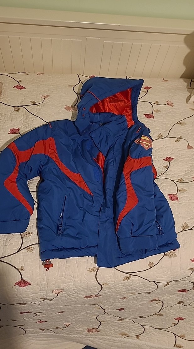 Superman logolu Mavi Kırmızı Kapüşonlu Erkek Çocuk Kayak Montu