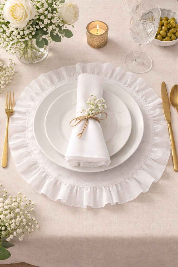 beyaz leke tutmaz kumaştan üretilmiştir şık beyaz dantel detaylı klasik tarzda ve hafif bir görünüme sahiptir. Zarif masa düzenleri için uygundur. ️bu uruden stok 100 adettir istediğiniz adeti yorumlarda belirtiniz.